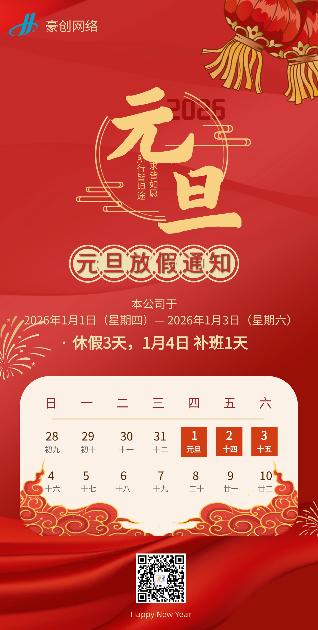 【豪创网络】元旦假期温馨提示